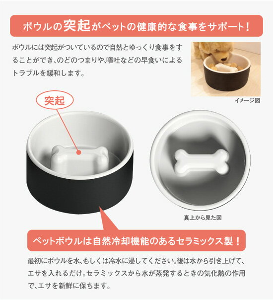 食器の中央にかわいい骨型の突起をつけることで、早食いを防止します。